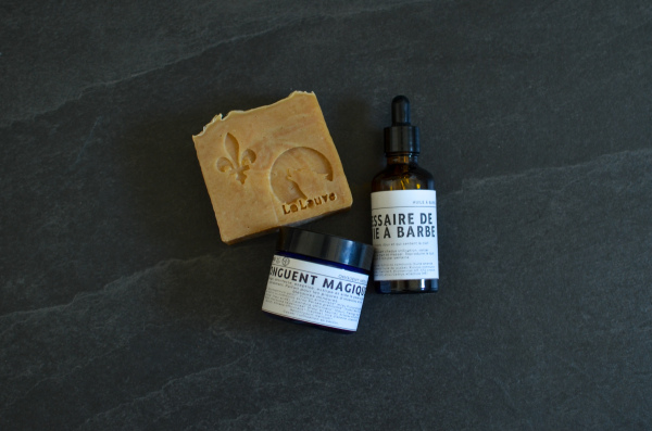 Ingrédients: Huiles végétales de noix de coco*, olive*, canola*-**, tournesol*-** et/ou de pépins de raisins* | Beurre de karité*-*** | Bière artisanale noire de la Noire et Blanche.